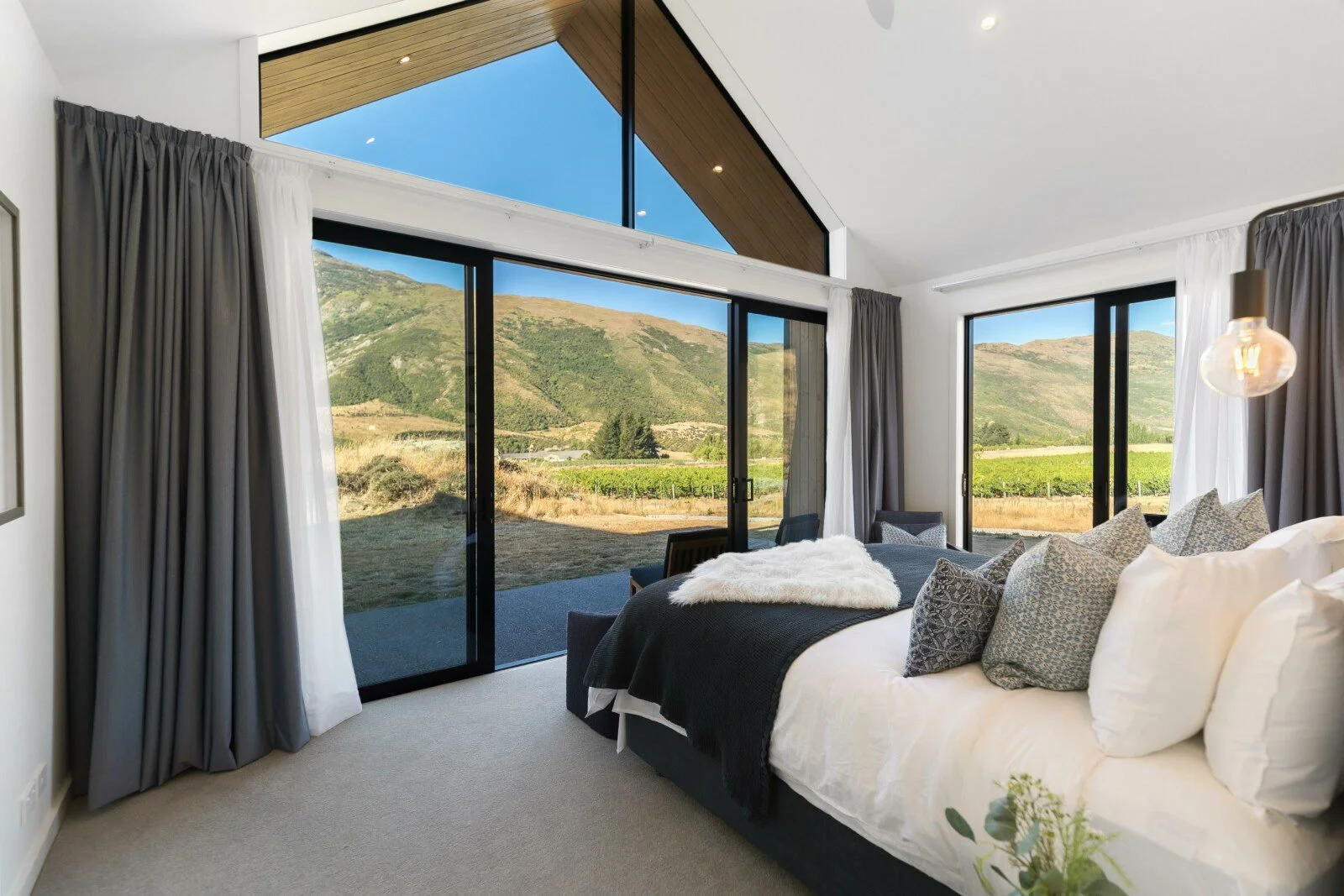 Nestled amongst 20-year-old established pinot noir and pinot gris vines, this large property has been designed to enjoy views, sun, and privacy within Gibbston Valley.